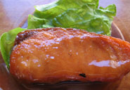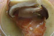 新鮮なサーモンをムニエルにし、きのこのスープをかけました。