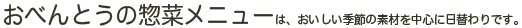 とにかくシーズナルのお弁当はメニューが豊富。本格的なメニューから献立の参考になるものまで、 これまでのメニューの一部ご紹介させていただきます。